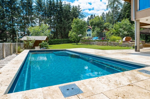 Die ideale Abdeckplane für eingelassene, rechteckige Pools. Diese Abdeckung zählt zu unseren Favoriten, denn sie vereint Sicherheit und Schutz des Pools im Sommer und im Winter. In aufgerolltem Zustand bildet VERANO eine ca. 20 cm starke Rolle, die fast dezent hinter dem Becken liegt.